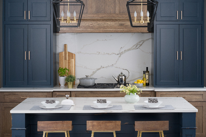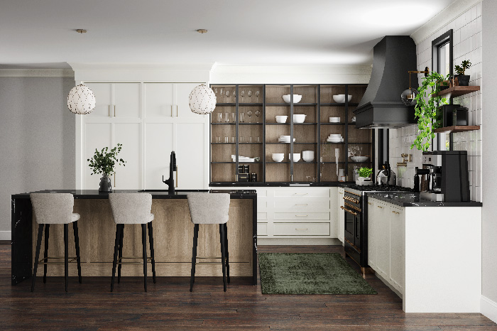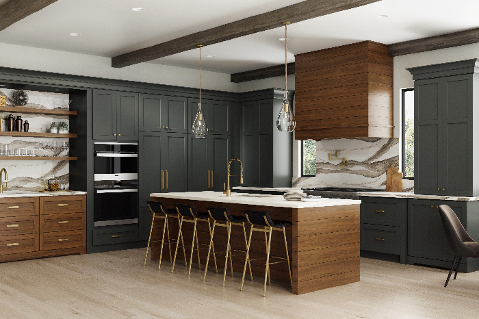 Dura Supreme has two main product lines: Crestwood and Bria. Crestwood is a face frame product which includes Full Overlay, Standard Overlay, and Inset door styles. Nearly all finishes and door styles are available in Crestwood. Bria is a frameless product commonly referred to as European style. Bria uses extremely tight reveals around doors and drawer fronts at only 1/16-inch. Similar to Crestwood, nearly all finishes and door styles are available in Bria.